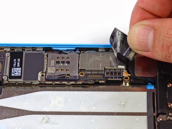 На материнской плате мы видим процессор Apple A6, 1 Гбайт памяти DDR2 производства Elpida, модем и трансивер Qualcomm. Минимум изменений по сравнению с оригинальной моделью iPhone 5.